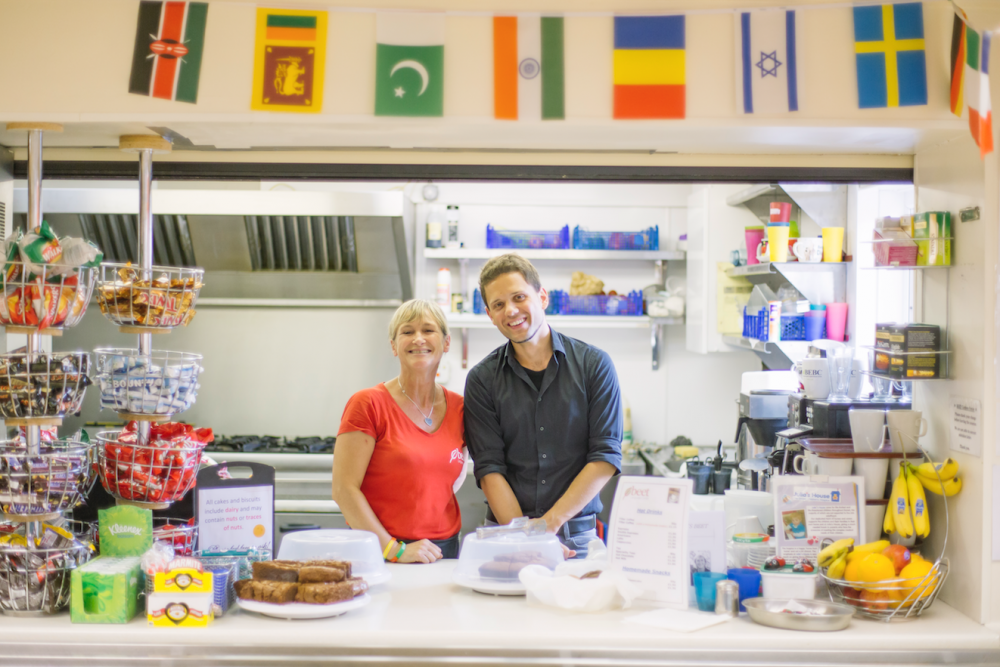 - Uma cafeteria onde diversas refeições, lanches e bebida são servidos por preços especiais para estudantes